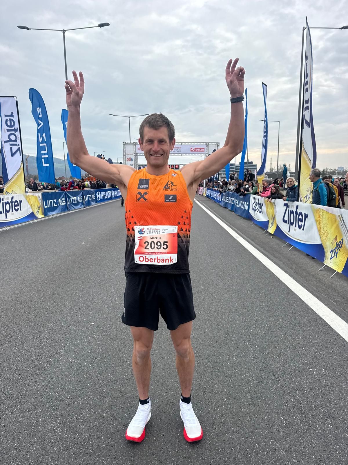 Ein starke LC Sicking Beteiligung gab es heute beim Linz Marathon auf allen angebotenen Strecken. Im Marathon wurden auch die Österreichischen und Oberösterreichischen Meisterschaften ausgetragen. Mit dabei auch ein starkes Team von uns, mit Markus Lemp, der auch als Anwärter zum Staatsmeistertitel gehandelt wurde, Klaus Derndorfer und Peter Buchleitner. Im Halbmarathon lief auch noch Kadermitglied Jochen Köllnreitner ein super Rennen. Als erstes gibt es zu erwähnen das Markus Lemp Vizestaatsmeister im Marathon wurde. Und das mit neuer persönlicher Bestzeit und erneutem LC Sicking Rekord von 2:23:11h. Er wurde damit auch O.Ö. Landesmeister und mit seinen Teamkollegen erreichten sie bei der ÖM den 3. und in der ÖOLM den starken 2.Rang in der Teamwertung. Bei sehr guten Laufbedingungen holte sich Peter Buchleitner (2:41:02h) den Masters Landesmeistertitel in der Klasse AK40 bei der Klaus Derndorfer (2:51:46h) auch noch den 5.Rang erreichte. Zu erwähnen ist auch das unser Obmann Friedi Englbrecht im Halbmarathon den Sieg in der Klasse AKM65 holte. Werner Gebetsroither holte in der Feuerwehrwertung im 5km Rennen auch noch den Sieg für die Feuerwehr Schörfling. Alle anderen LCS Starter und Starterinnen in den Hobbybewerben lieferten auch tolle Leistungen ab. Hier die Ergebnisse. Bericht: Walter H.
